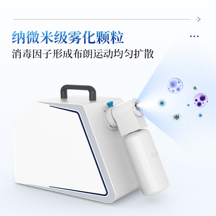 3、微米级雾化颗粒,消毒因子形成布朗运动,均匀扩散。